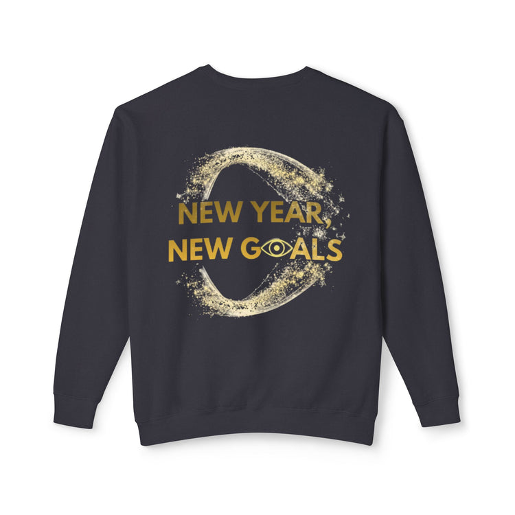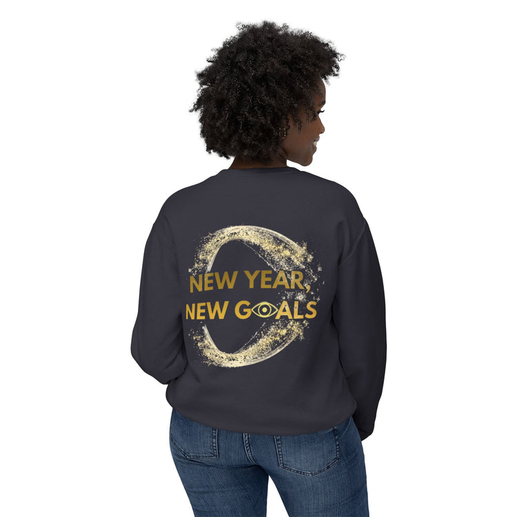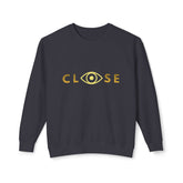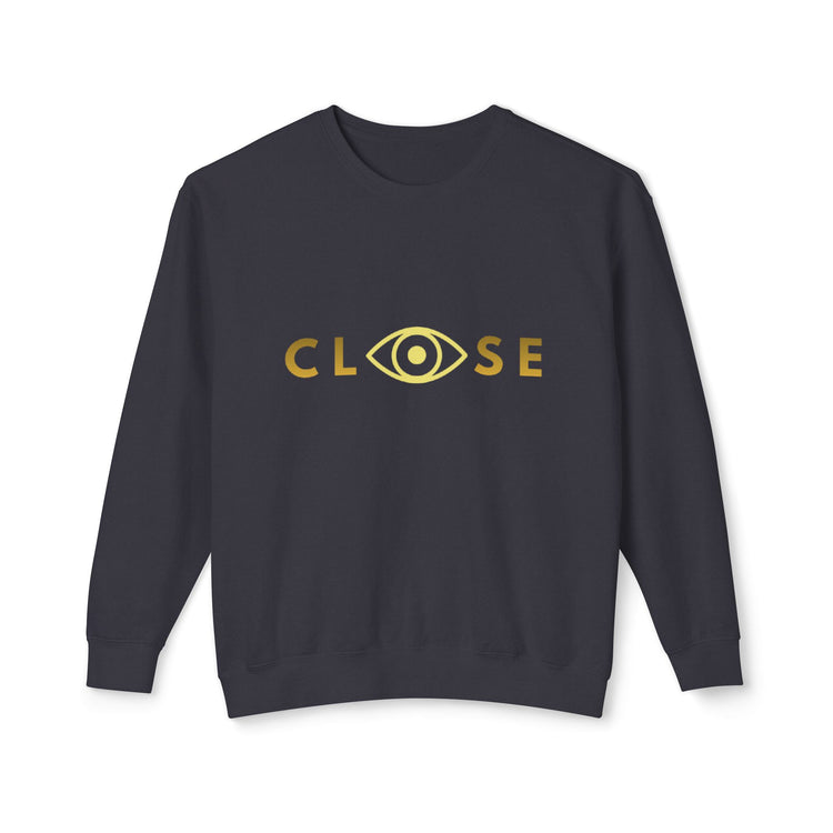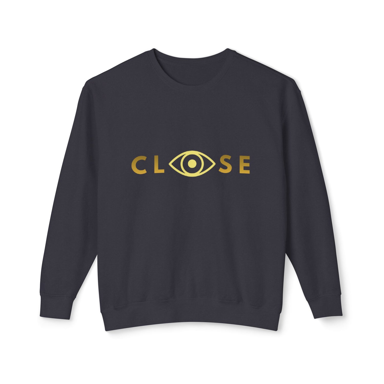 Lightweight and quietly bold — this CLOSE New Years Black Crewneck carries a calm confidence. The front shows a minimal gold emblem that spells CLOSE with an eye at its center. On the back, a warm gold brush-ring frames the words NEW YEAR, NEW GOALS, a gentle reminder to slow down, look inward, and set intentions for the new year. Wear it on chill mornings with coffee, between planning sessions, or when you need a wearable nudge toward focus. The relaxed silhouette and soft ring-spun cotton drape easily over layers without weighing you down, while ribbed cuffs and hem keep the shape tidy. It feels like a trusted companion for people who prefer mindful momentum over noise.
